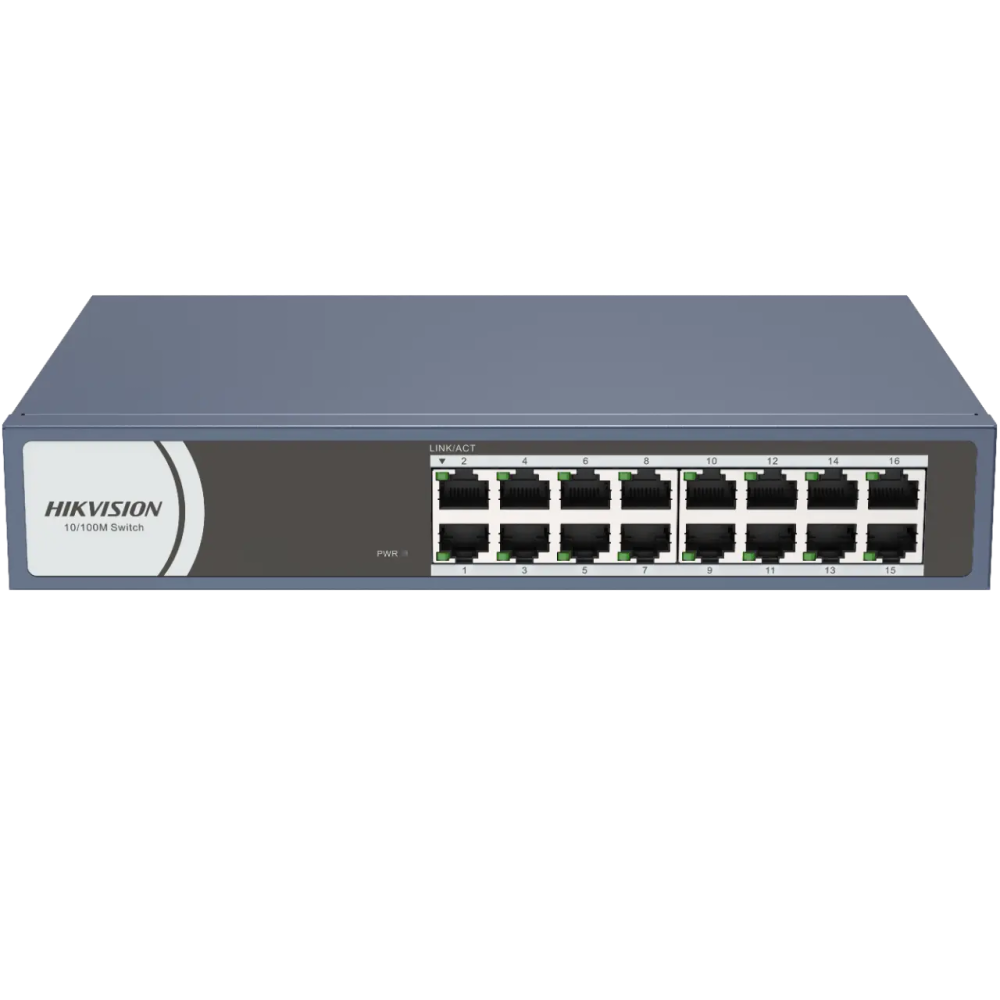 16 10/100M RJ45 portov, 19-palcový nespravovaný prepínač s oceľovým puzdrom na montáž do racku