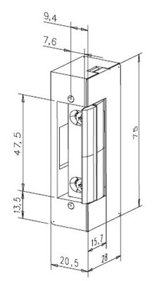Elektrický zámok, nízkoodberový, 12 V DC, s momentovým kolíko Univerzálny elektrický zámo štandardná konštrukcia západk Symetrický konštrukčný tva štandardne s FaFix = nastaviteľná západk Je možné použiť pre DIN pravé a ľavé dvere otočením o 180° Je možné použiť všetky bežné čelné plech