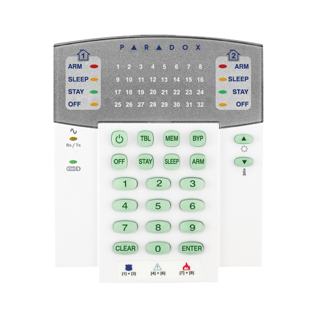 K32RF je bezdrôtová klávesnica, ktorá ponúka rovnaké funkcie ako drôtové klávesnice - ovládanie i programovanie zabezpečovacieho systému. Bezdrôtová klávesnica K32RF je kompatibilná s ústredňou MG5050/500 od verzie 1.30 a vyššie, Sectra SP 5500/6000/7000. Táto klávesnica môže byť v systéme kombinovaná s drôtovými klávesnicami Bezdrôtová klávesnica K32RF obsahuje nabíjací Li-on akumulátor 3.7 V. Klávesnica je napájaná pomocou adaptéra PA6, ktorý nie je súčasťou dodávky klávesnice. Akumulátor je možné nabiť štandardnou nabíjačkou pre mobilné telefóny. Vhodné typy sú napríklad nabíjačky pre MT Nokia, typ ACP-12E alebo ACP-8U, prípadne je možné klávesnicu napájať stabilizovaným zdrojom 300mA 6Vdc. Na akumulátor je klávesnica schopná pracovať 48 hodín zabudovaný vysielač zobrazenie stavu 32 zón pomocou LED diód indikácia rôznych stavov systémov upgrade klávesnice cez interface 307USB a program In-Field dosah 40 m (v zástavbe) 8 jednodotykových akčných tlačidiel jednoduchá aktivácia Panik poplachu nastavenie podsvetlenia klávesnice kompatibilná s ústredňou MG-5000, MG5050, SP5500, SP6000, SP700