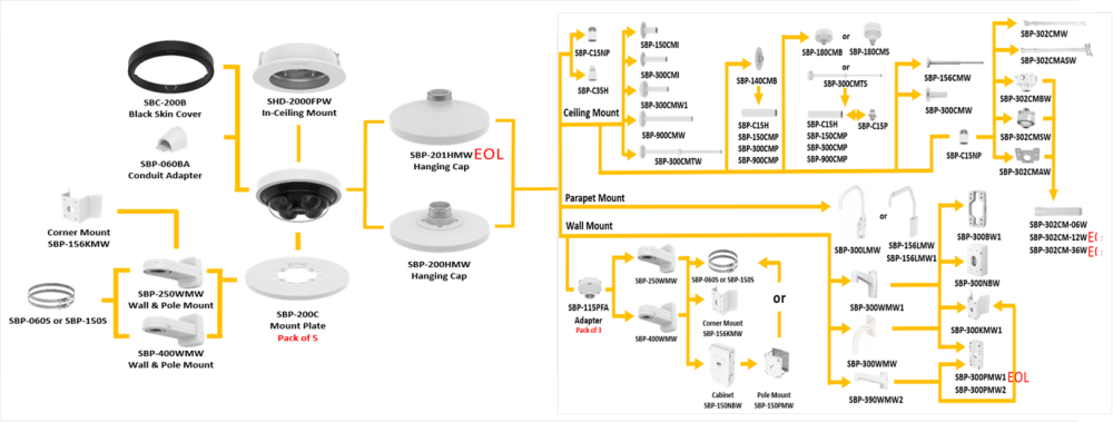 Stropný montážny adaptér pre bezpečnostné kamery, navrhnutý pre stabilné upevnenie a estetické zapracovanie do priestoru. Podporuje kamerové modely kompatibilné s jeho štandardom a je vhodný pre vnútorné aj vonkajšie inštalácie.