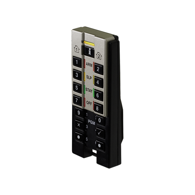 REM 3 v sebe kombinuje výhody klávesnice a bezdrôtového prenosného ovládača. 15 tlačideiel umožňuje vyššiu úroveň zabezpečení a pomocou dvojcestnej komunikácie je možné zistiť aktuálny stav dvoch podsystémov. Dvojcestný diaľkový ovládač je kompatibilný s ústredňami Magellan MG5000/5050, MG6250, Spectra SP4000/5500/6000/7000 (verzia 3.00 alebo vyššie) a bezdrôtovými modulymi RTX3 (verzia 1.40 alebo vyššie), klávesnicami K32LX/K641LX. Kompaktný vodeodolný dizajn. LED i akustická signaliácia funkcií. Podporovaná funkcia STAY D. Diagnostika signálu.Pozor! Ovládač nekomunikuje s bezdrôtovým rozšírením MG-RCV3 a RPT1Technické parametre Frekvencia: 433 MHz nebo 868 MH Typ batérie: 3 V lithiová baterie (CR 2032) životnost minimálně 1 ro Dosah: 45 Rozmery: 8 cm x 3,4 cm x 1,5 c Kompatibilita: MG5000 / MG5050 V 3.0 a vyššie Spectra SP V 3.0 a vyššie v spolupráci RTX3 V 1.31 a vyššie K641LX, K32LX, MG6250 Upozornenie: REM3 nie je kompatibilný s MG-RPT1 a nie je teda možné predĺžiť jeho dosah