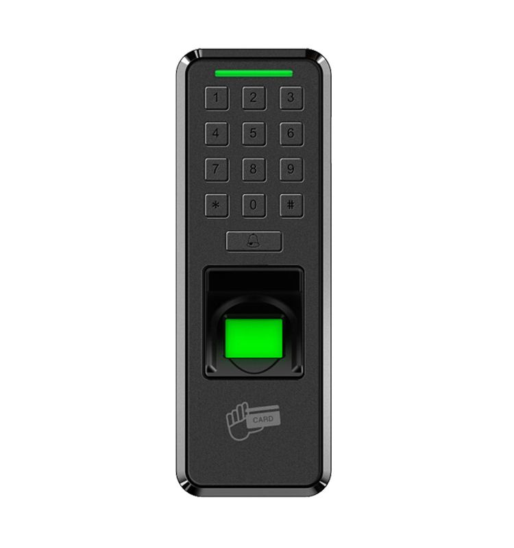 Komunikácia: Wiegnand vstup/výstup, US Riadenie prístupu: elmg. zámok, senzor dverí, odchodové tlačidlo, poplachová signalizácia, zvončekové tlačidl Wiegand Signal: štandardne 26bit, možnosť objednať 34bi výstup & vstup z externej čítačky: štandardné funkcie na riadenie prístupu pomocu karty, otlačku, kódu alebo kódu a karty, otlačku a kód.