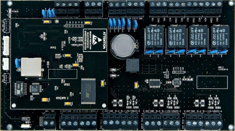 Modul má štyri Wiegand vstupy pre pripojenie RFID čítačky, štyri odchodové tlačidlá, štyri vstupy pre monitrovanie dverí, štyri poplachové výstupy a štyri NO/NC relé pre ovládanie zámku
