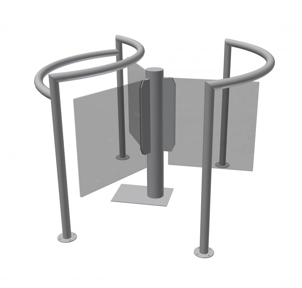 Trojramenný turniket nerezový brúsený, ramená so sklenenou výplňou samonosnou
