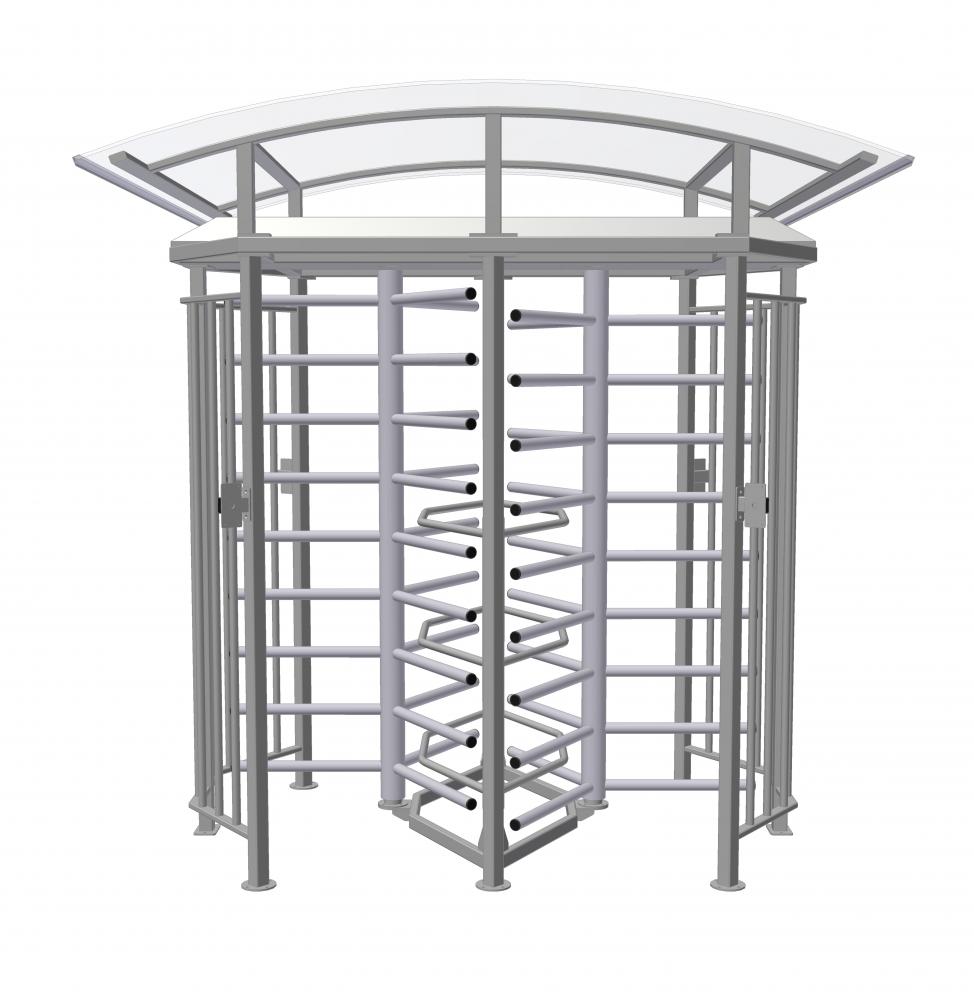 Obojsmerne riadený trojramenný vysoký dvojturniket so strechou - Nerez
