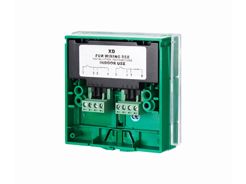 Tlačidlo núdzového otvorenia dverí, resetovateľné, zelená farba, dva páry kontaktov COM/NC/NO 250VAC 5A, prelamovací plast, ochrana proti náhodnému stlačeniu, kľúčik súčasťou balenia. Vhodné pre montáž na povrch na inštalačnú krabicu v balení a aj pre montáž na štandardnú zápustnú elektrickú krabicu vo vnútornom prostredí. Kombinovaná navigácia na tlačidle v slovenskom „NUDZOVE OTVORENIE“ a anglickom „EMERGENCY OPENING“ jazyku. Zhoda s normou EN54-11.