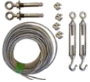 sada stabilizačných laniek, kotiev a napínakov pre ukotvenie stĺpa pomocou stabilizátora TWSTB